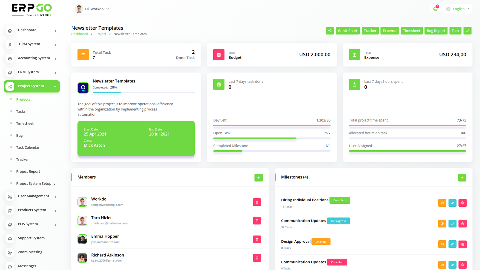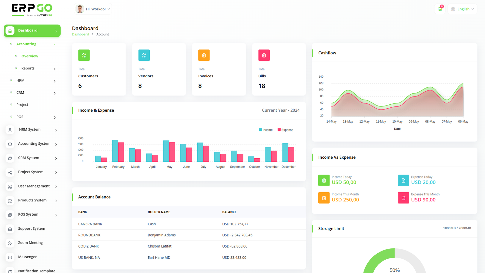 ERPGo SaaS All In One Business ERP With Project, Account, HRM, CRM & POS